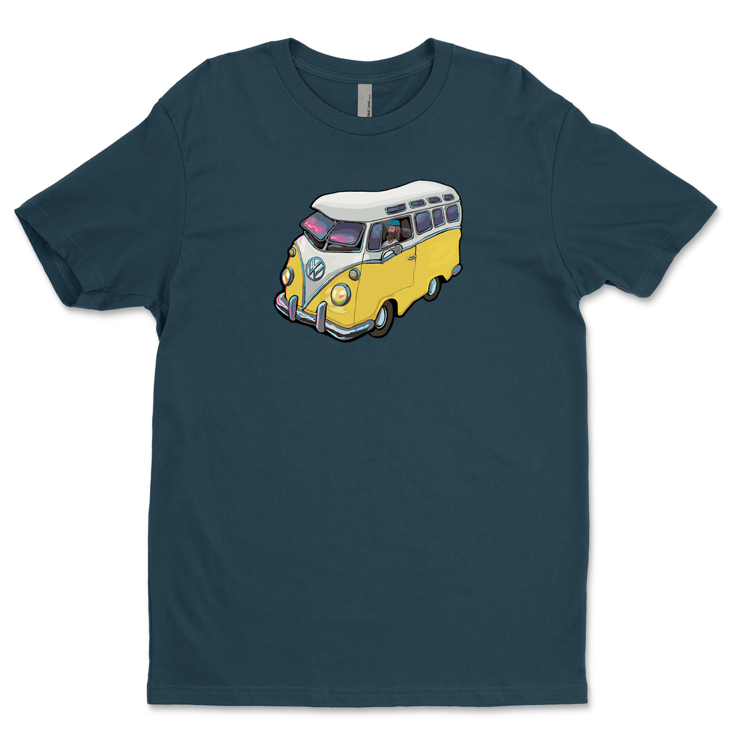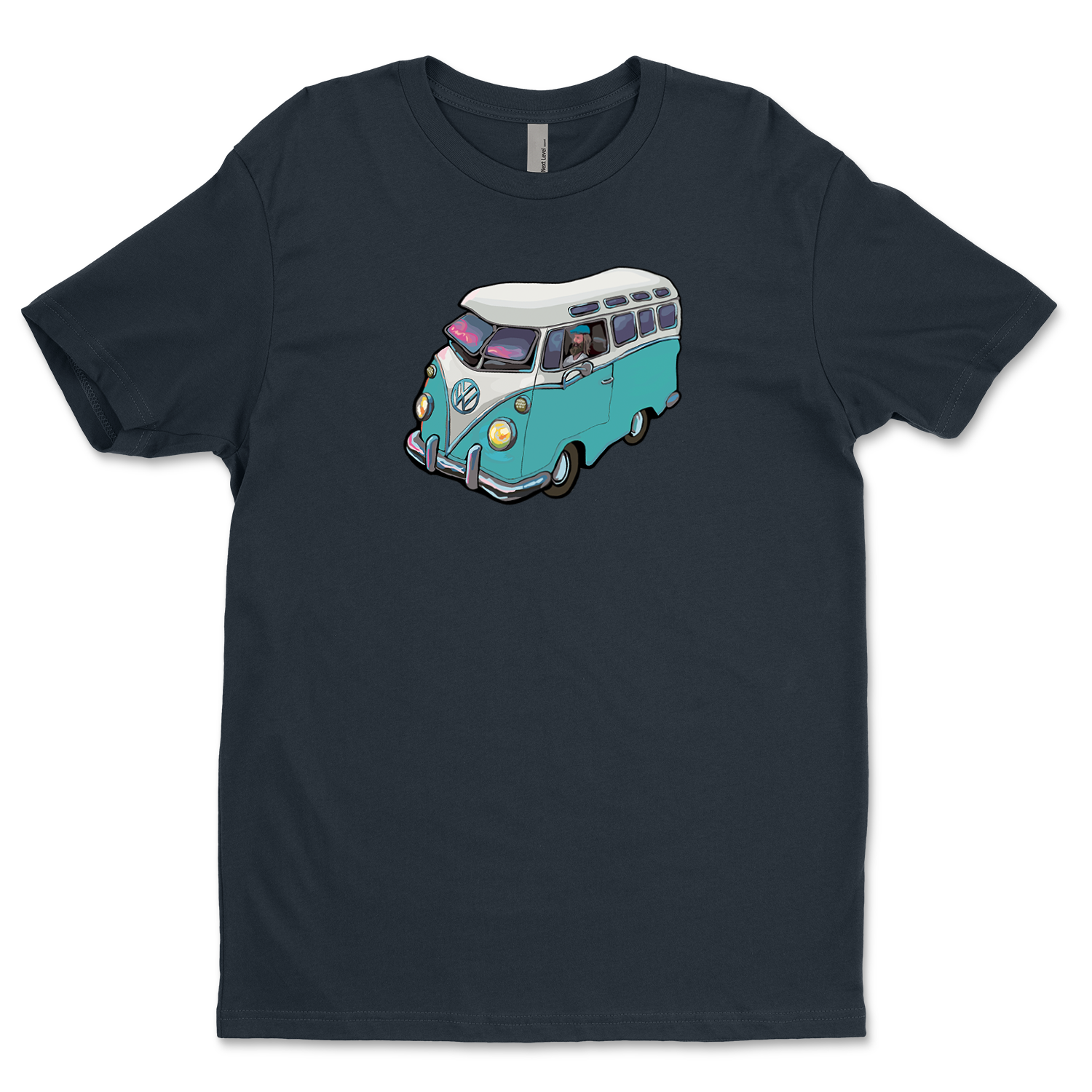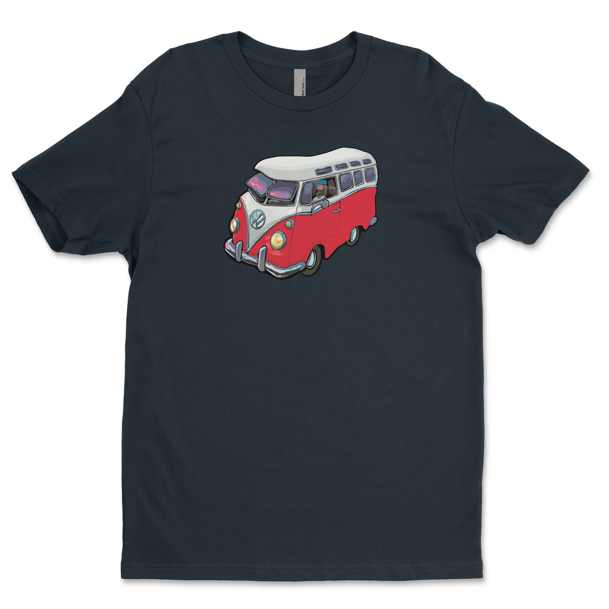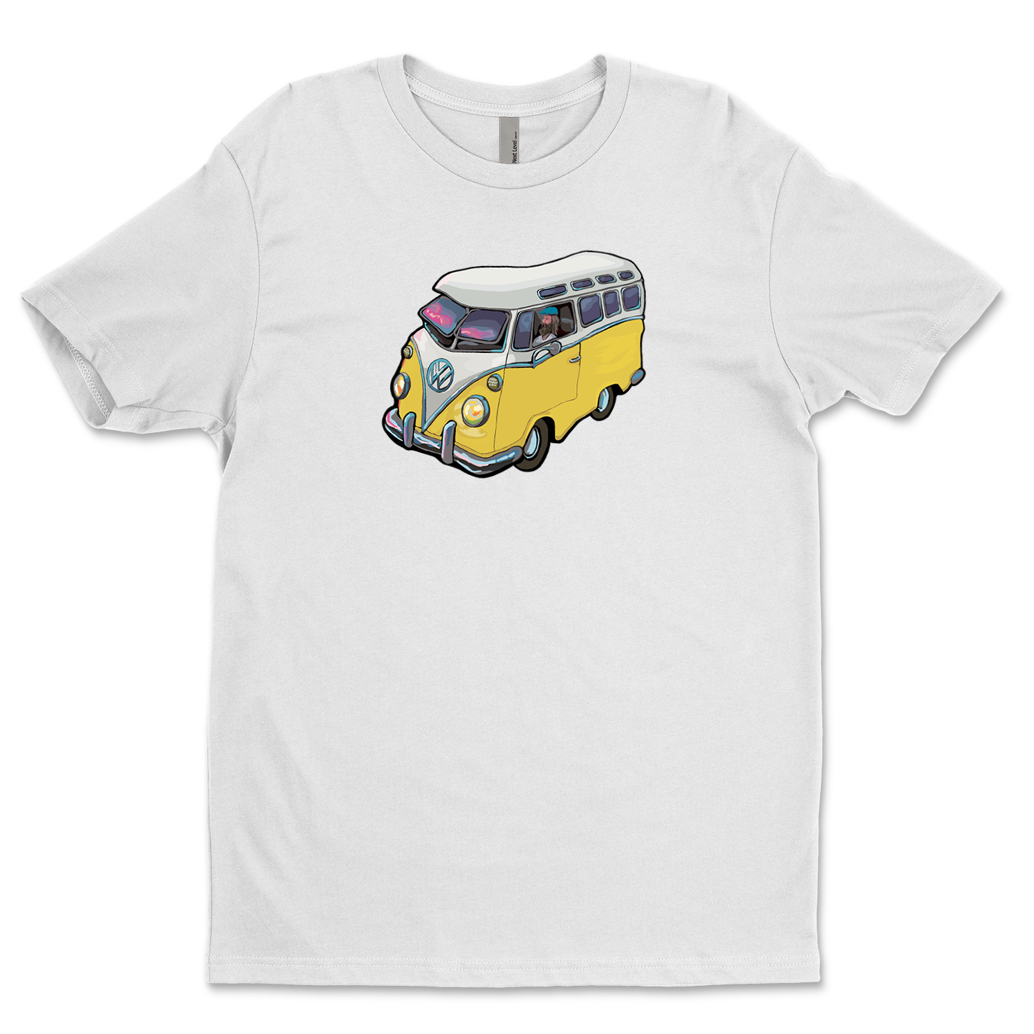 The VW Microbus from Michael Birawer's "Elephant Car Wash" printed with light flex vinyl on 100% soft cotton t-shirt.