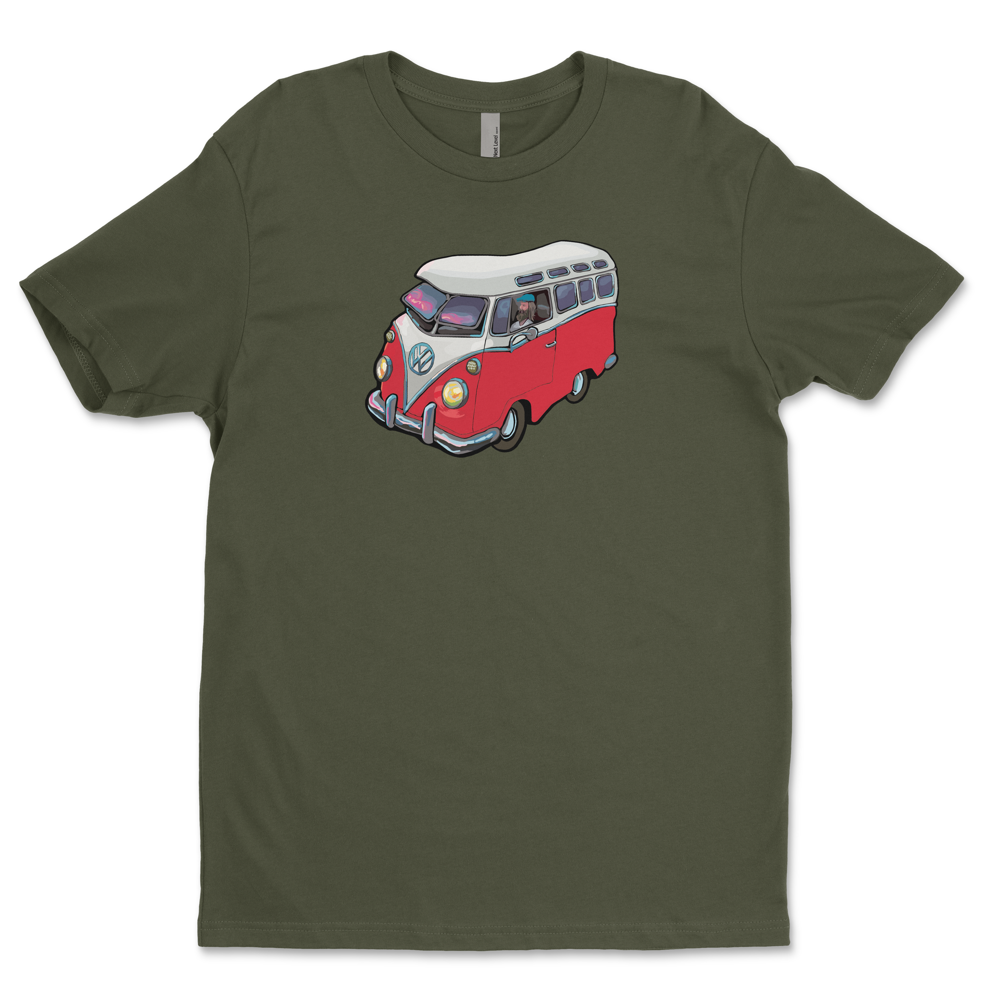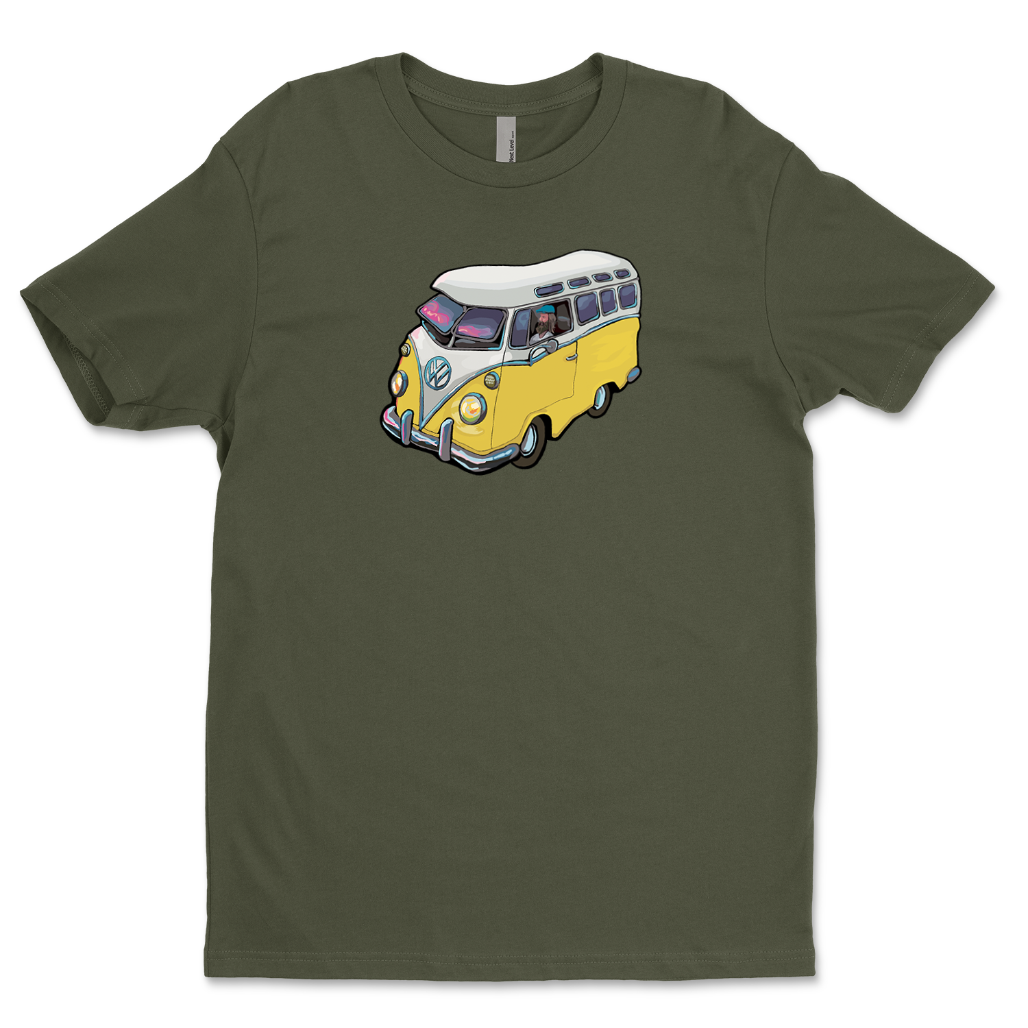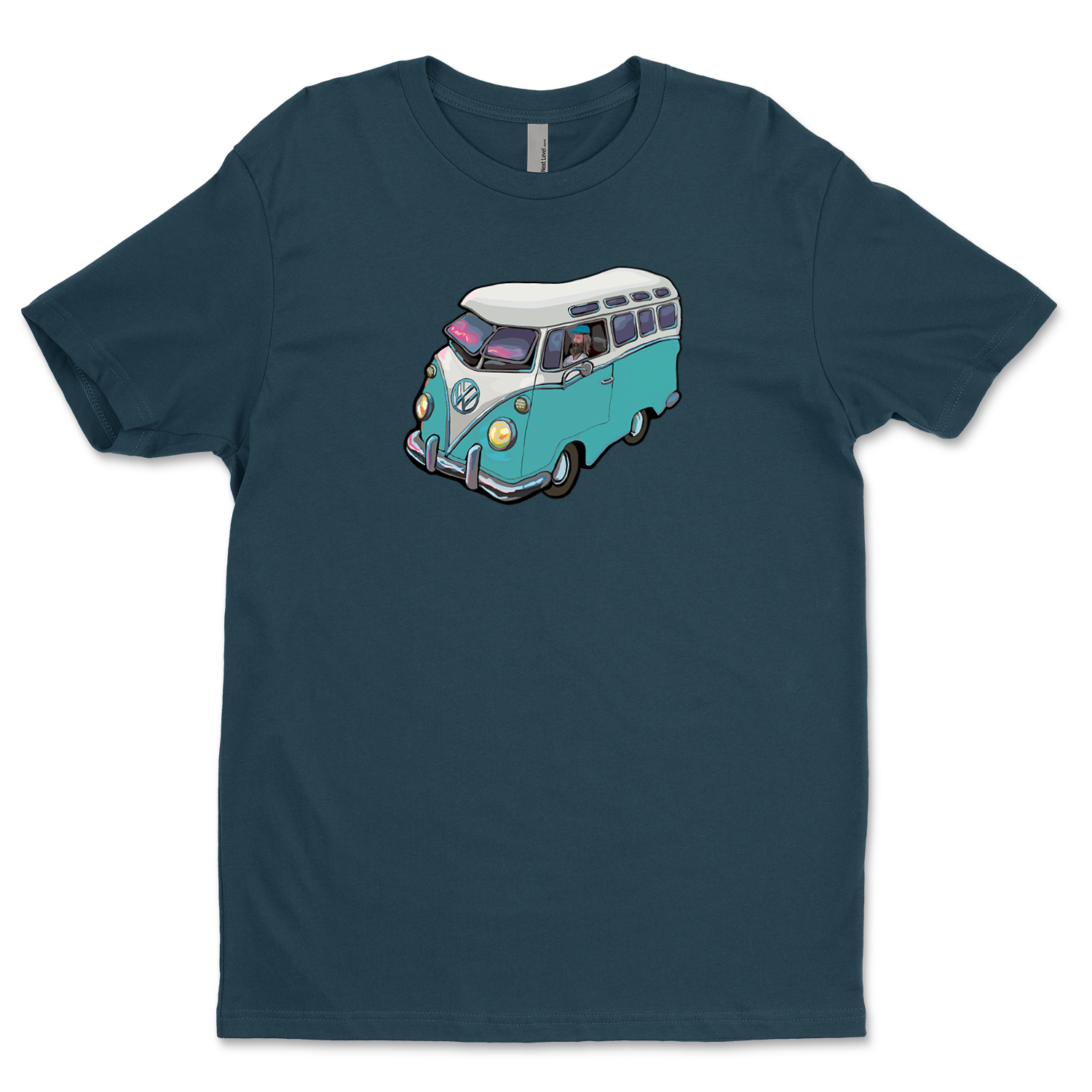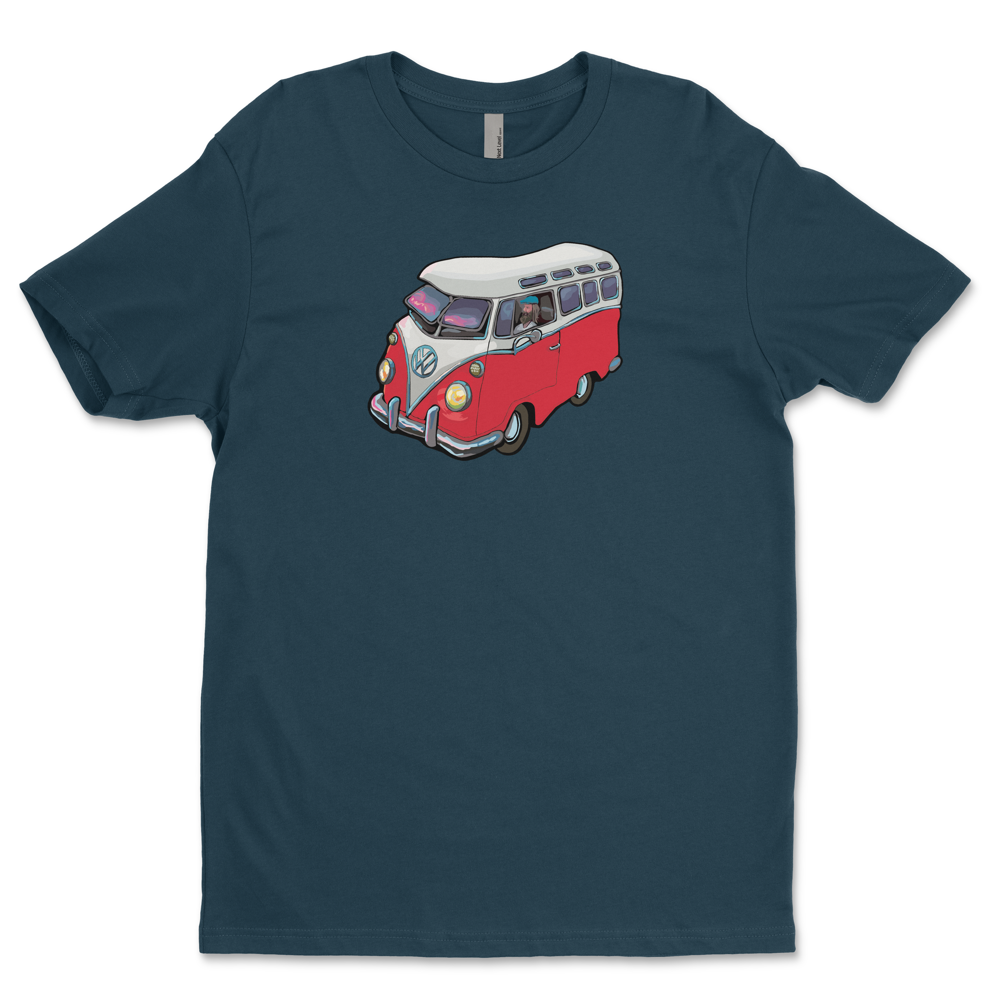 The VW Microbus from Michael Birawer's "Elephant Car Wash" printed with light flex vinyl on 100% soft cotton t-shirt.